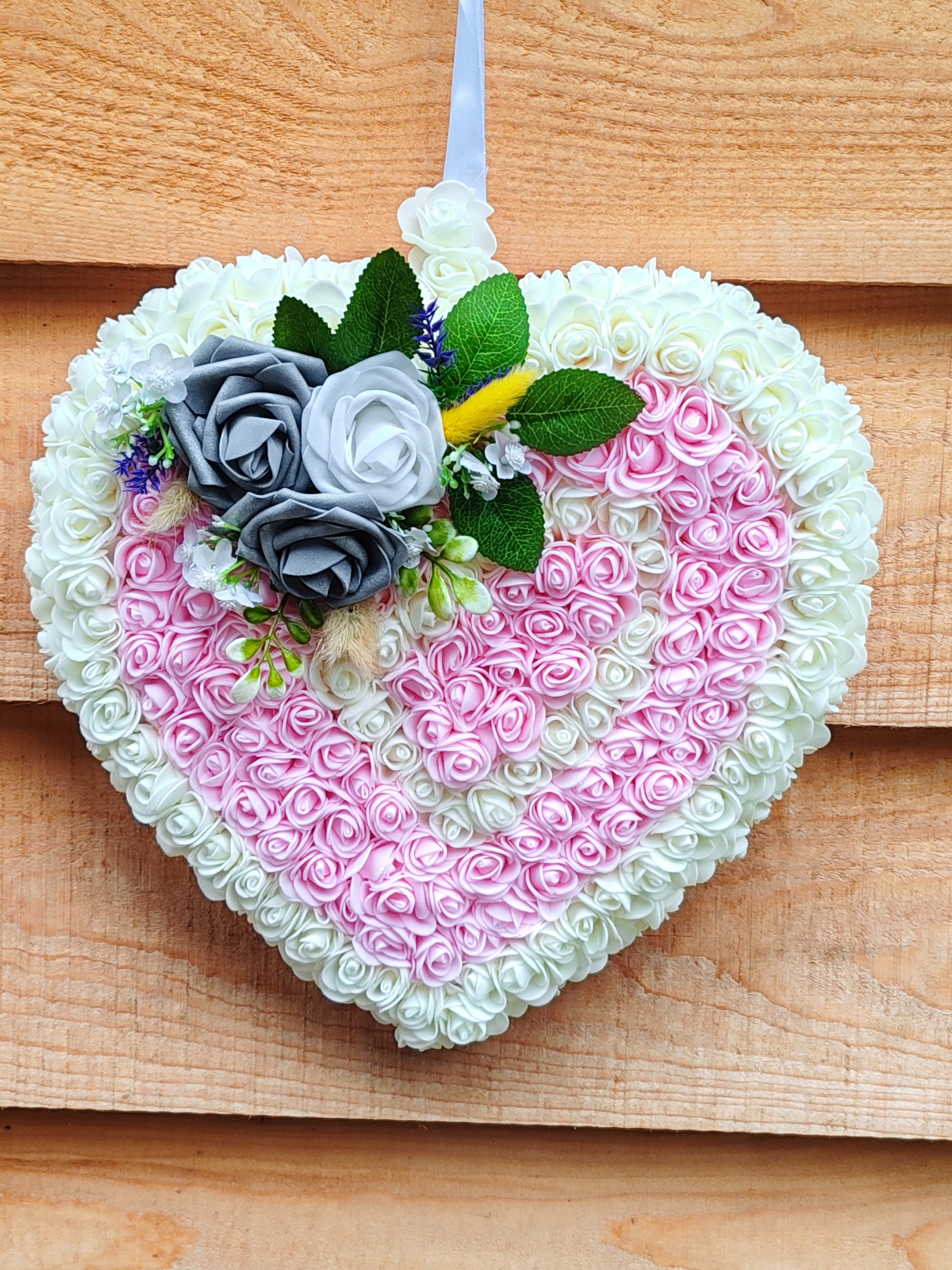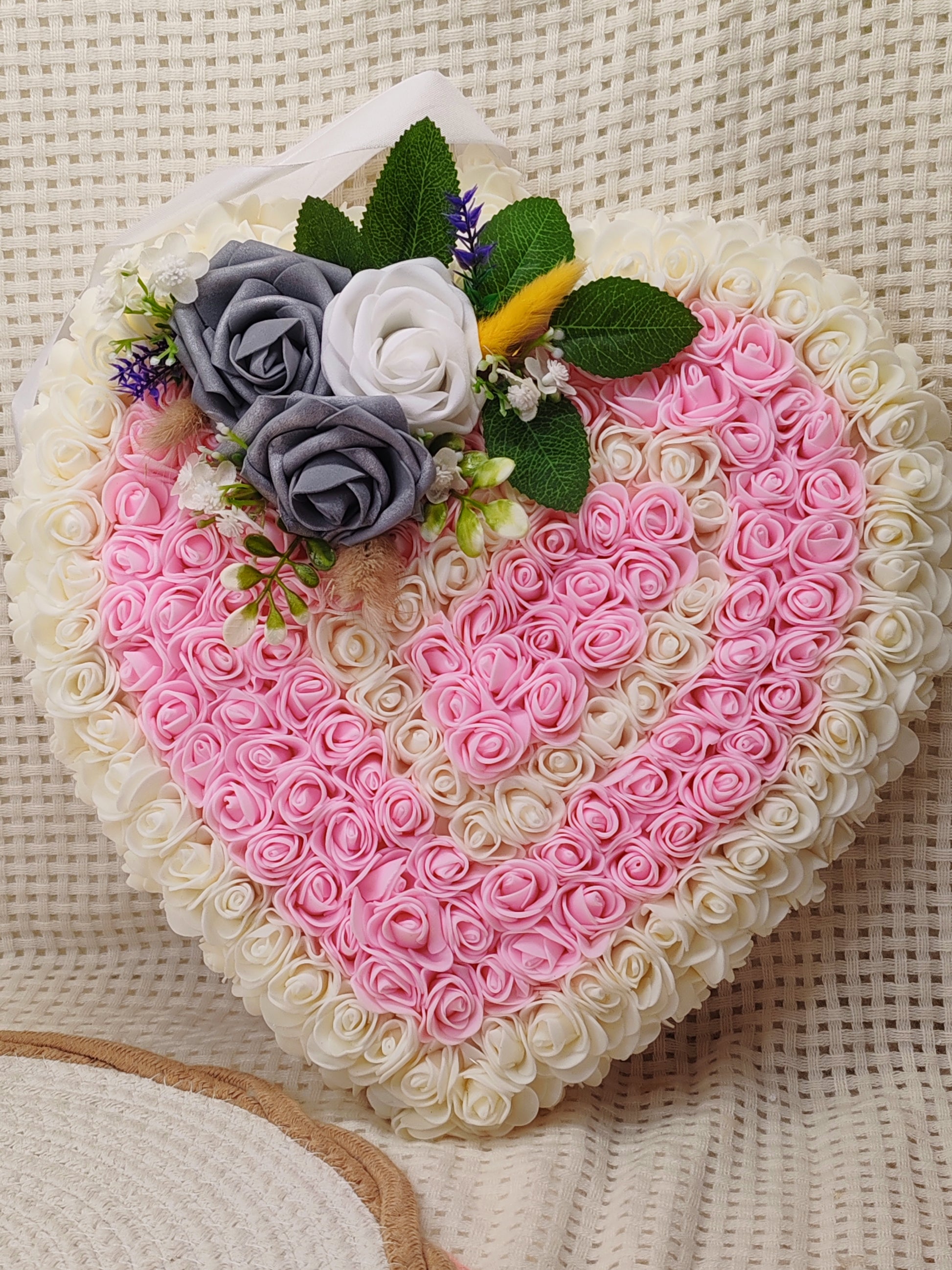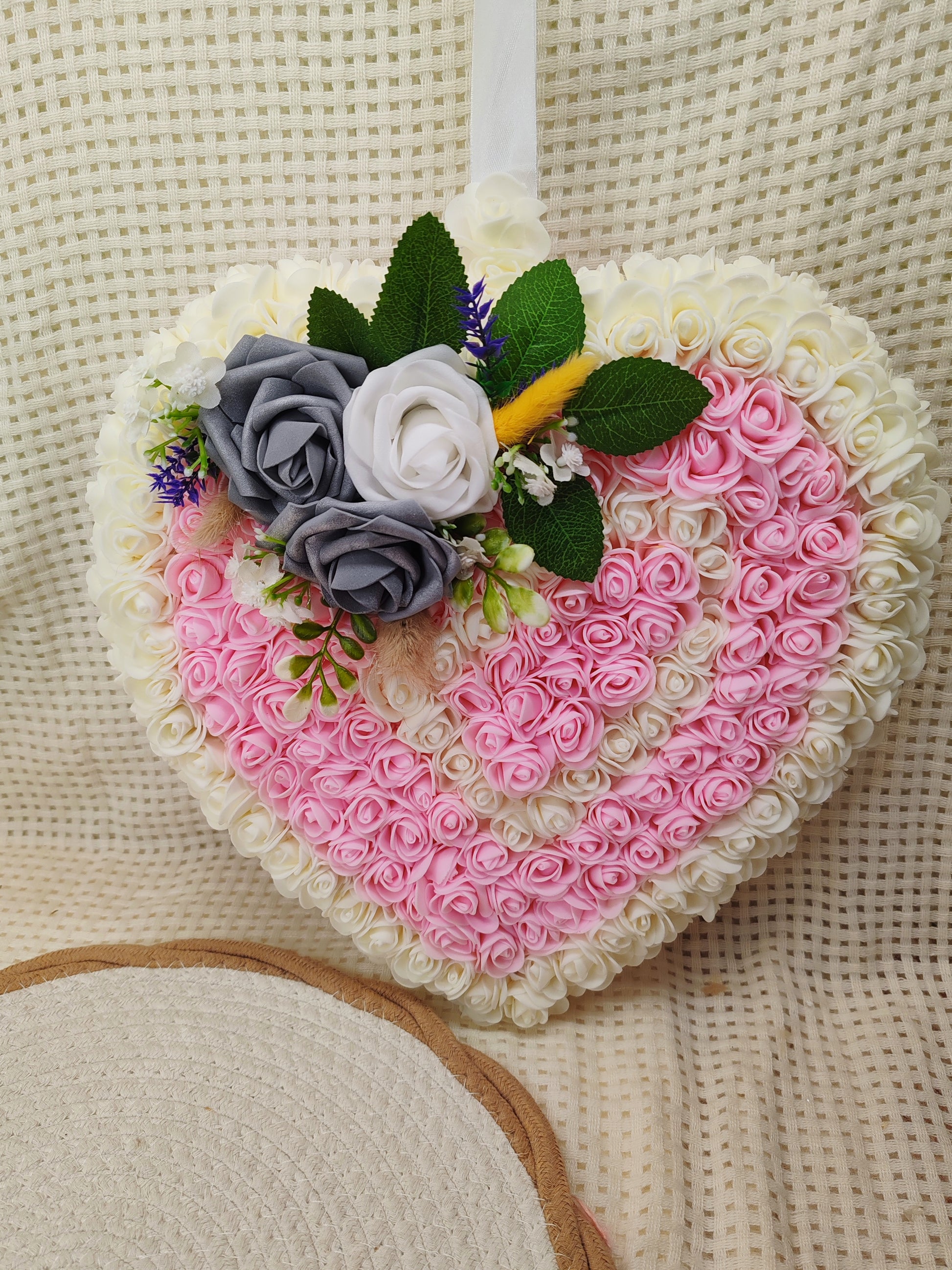 Laissez-vous charmer par ce magnifique cœur fait main, délicatement orné de roses en mousse artificielle. Avec ses 33 cm de hauteur, il apporte une touche d’élégance et de tendresse à toutes les occasions.