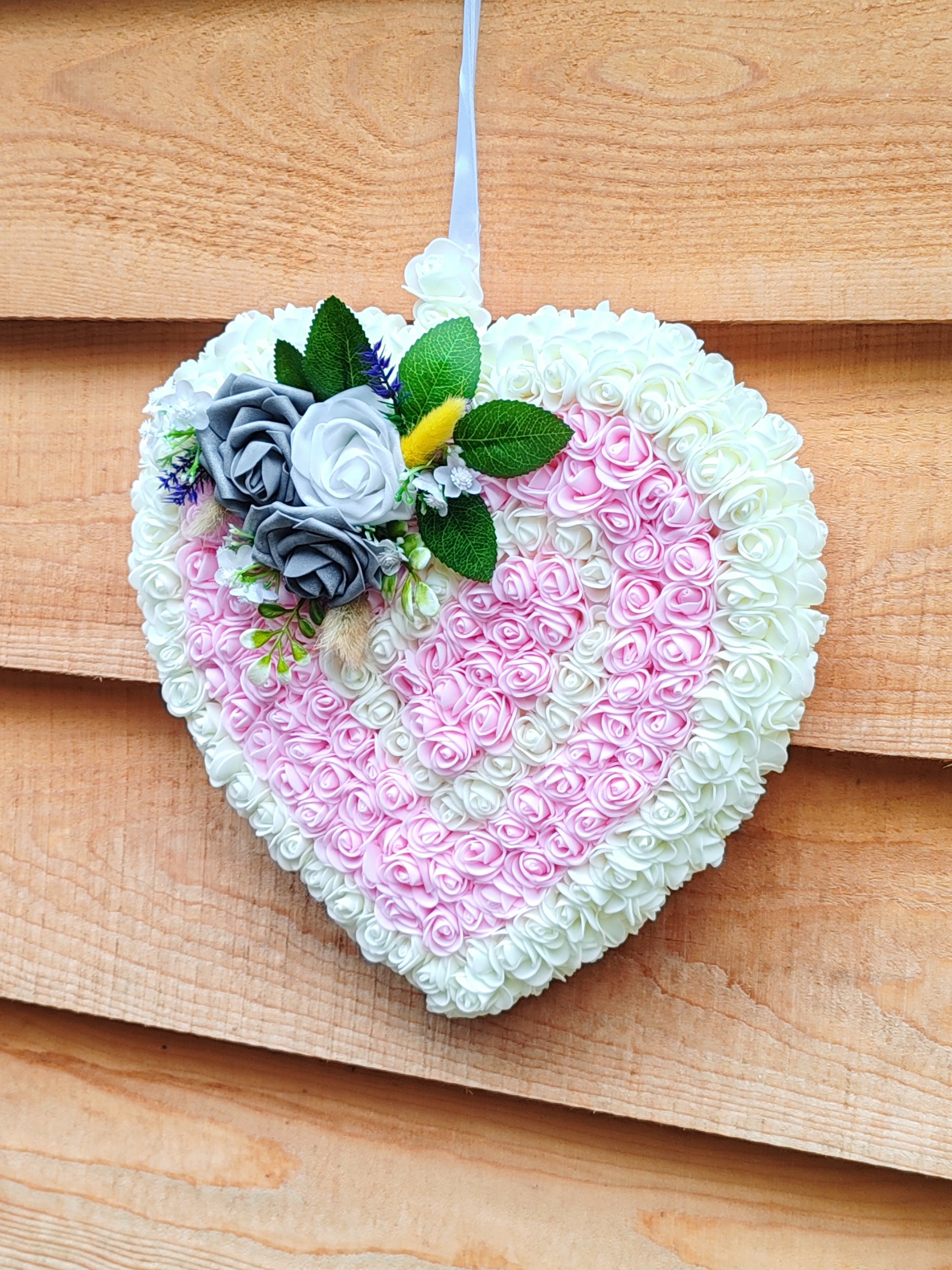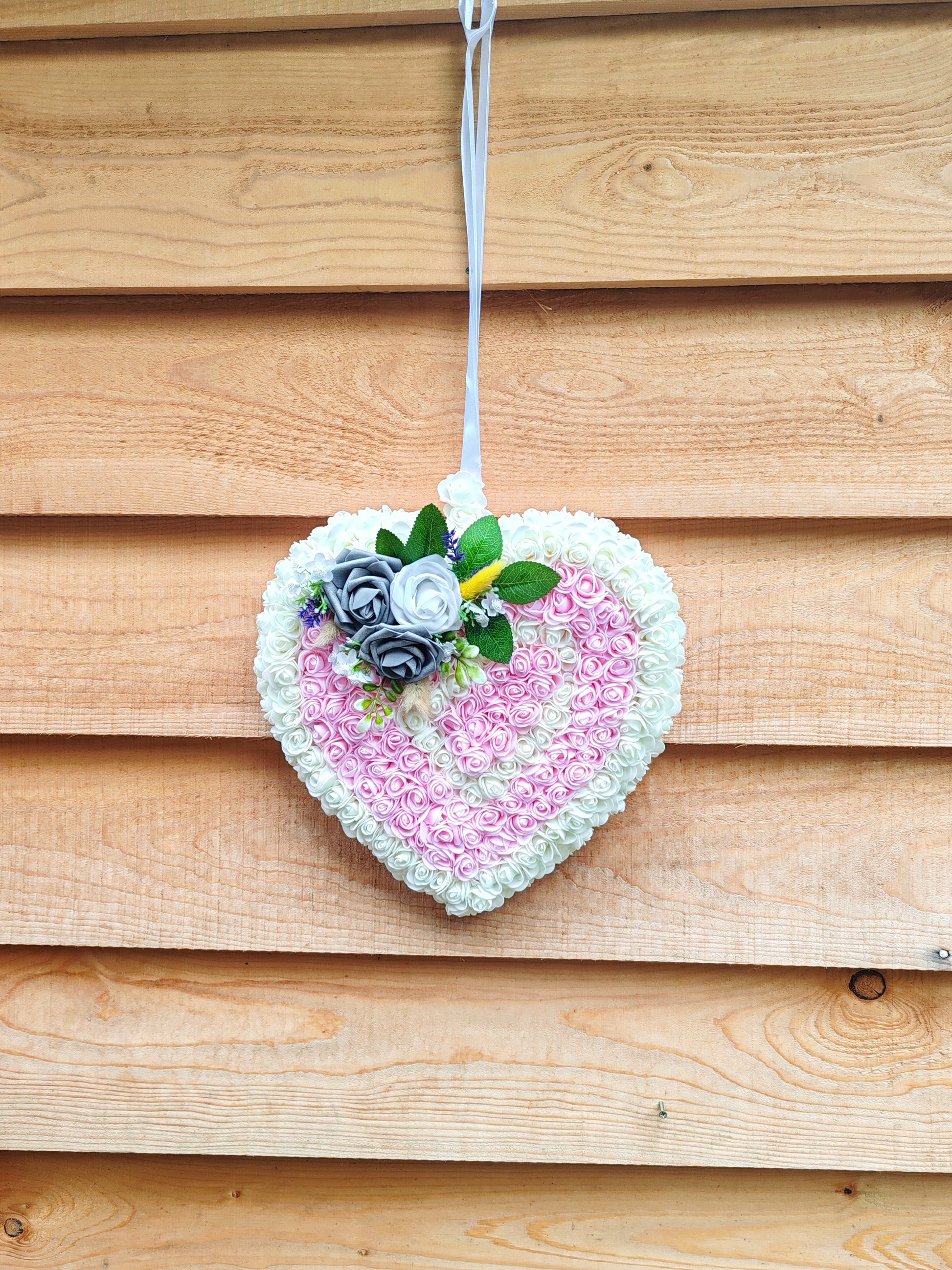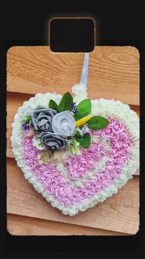 Laissez-vous charmer par ce magnifique cœur fait main, délicatement orné de roses en mousse artificielle. Avec ses 33 cm de hauteur, il apporte une touche d’élégance et de tendresse à toutes les occasions.