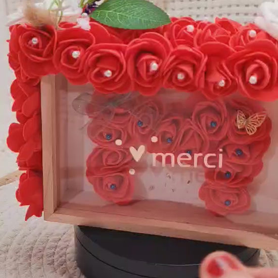 Découvrez ce cadre élégant et raffiné, entièrement recouvert de roses minutieusement disposées à la main.