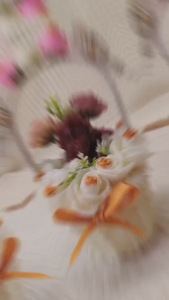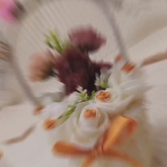 Laissez-vous charmer par ce petit panier de 10 cm, entièrement fait main, délicatement garni de roses artificielles éternelles et orné d’un adorable petit ange en résine. 🕊️🌹