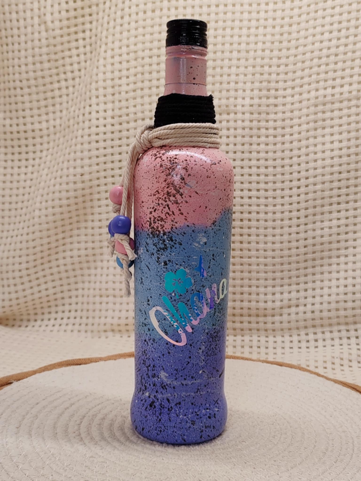 Découvrez cette magnifique bouteille en verre, entièrement customisée à la Cricut et peinte à la main avec soin.