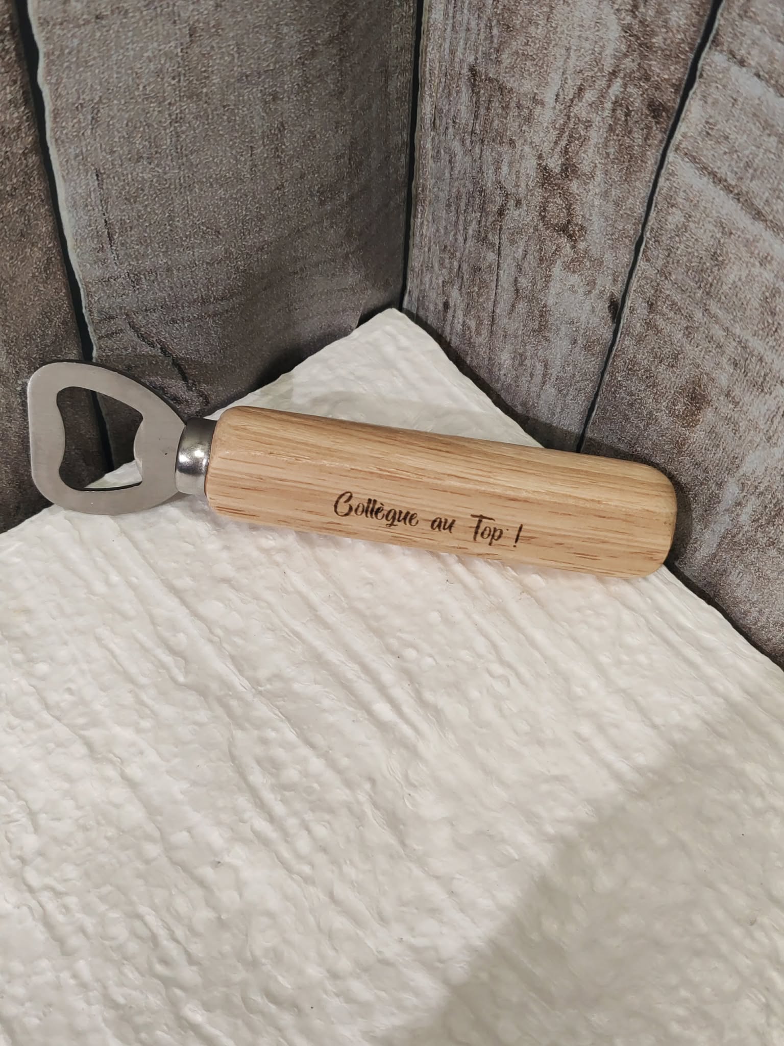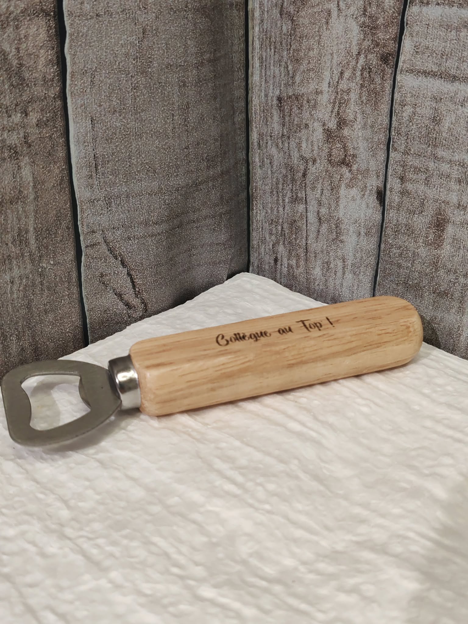 Découvrez notre décapsuleur de bouteilles gravé au laser sur bois ![]()