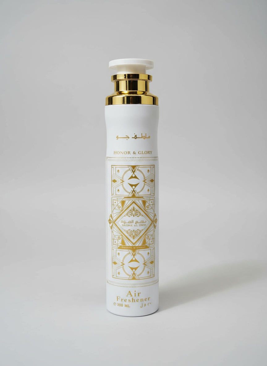 Honor & Glory – L’essence du prestige. Découvrez Honor & Glory Air Freshener by Lattafa, une création qui allie luxe, pureté et sophistication. Son parfum noble, inspiré du mythique Bade’e Al Oud, enveloppe votre espace d’une aura chaude, boisée et résolument élégante.