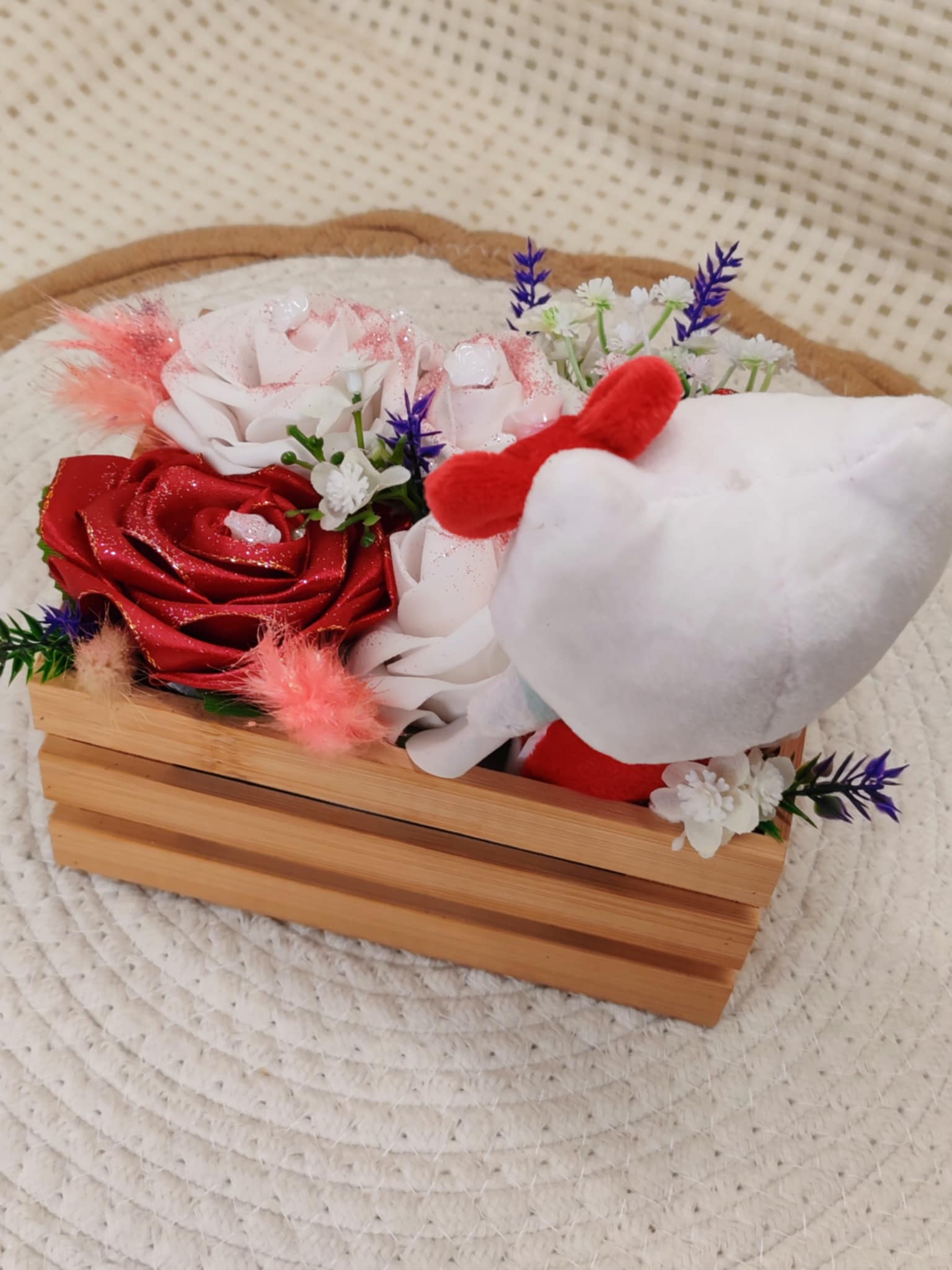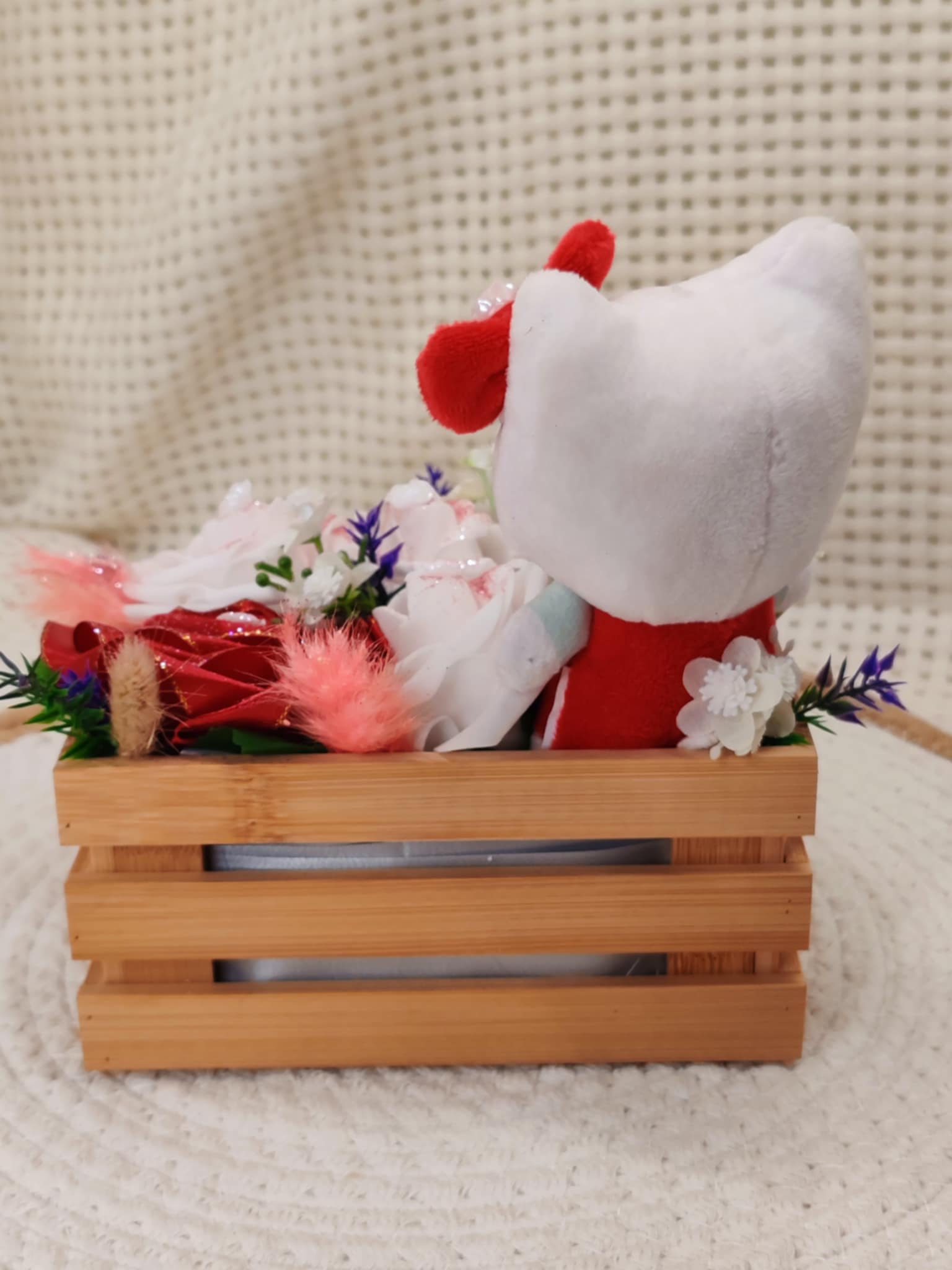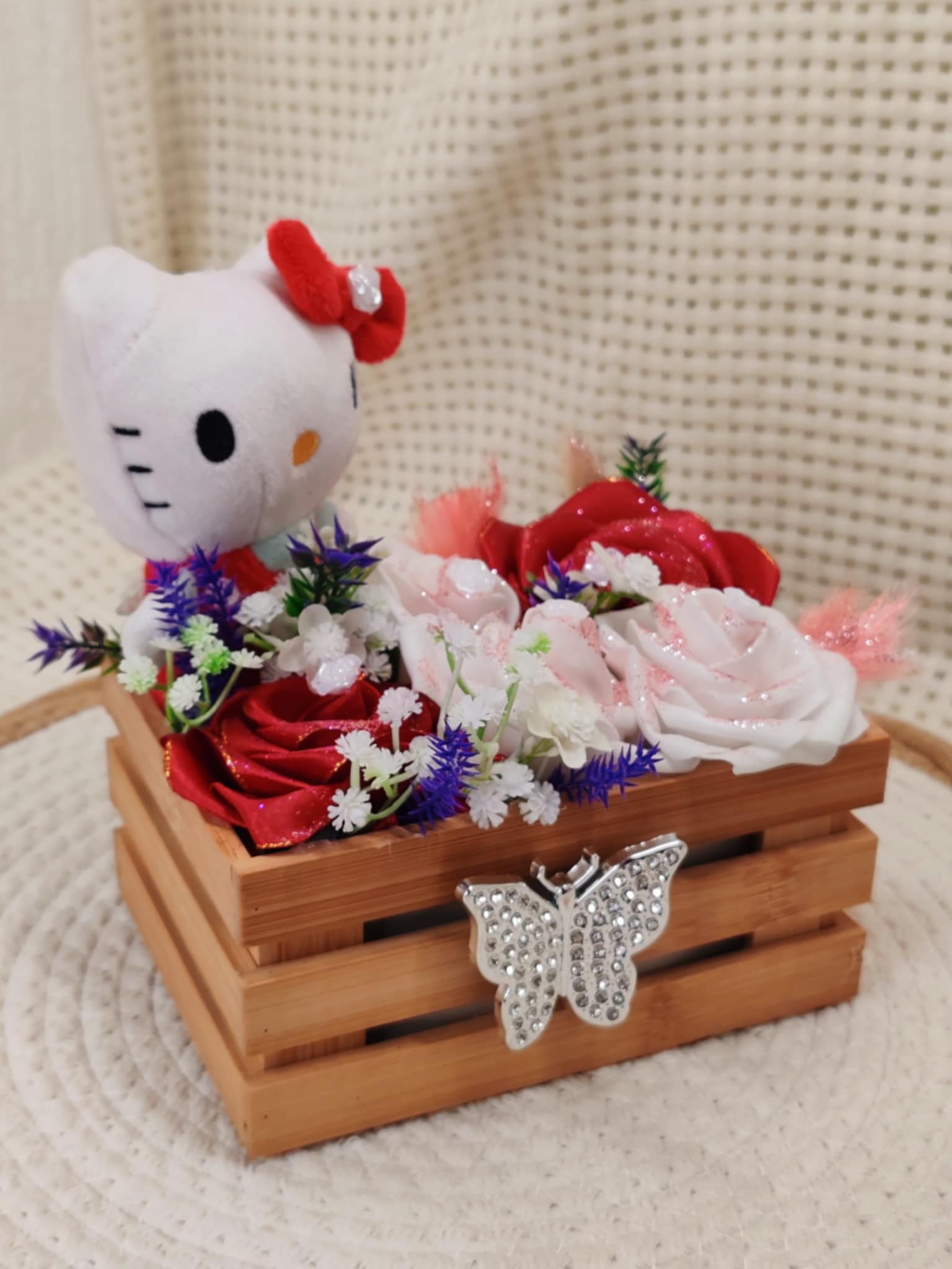 Offrez une touche de douceur avec cette adorable jardinière Hello Kitty, confectionnée entièrement à la main avec soin et passion. Elle est ornée de roses en tissu et en mousse, choisies avec minutie pour créer une décoration pleine de tendresse et d’élégance ![]()