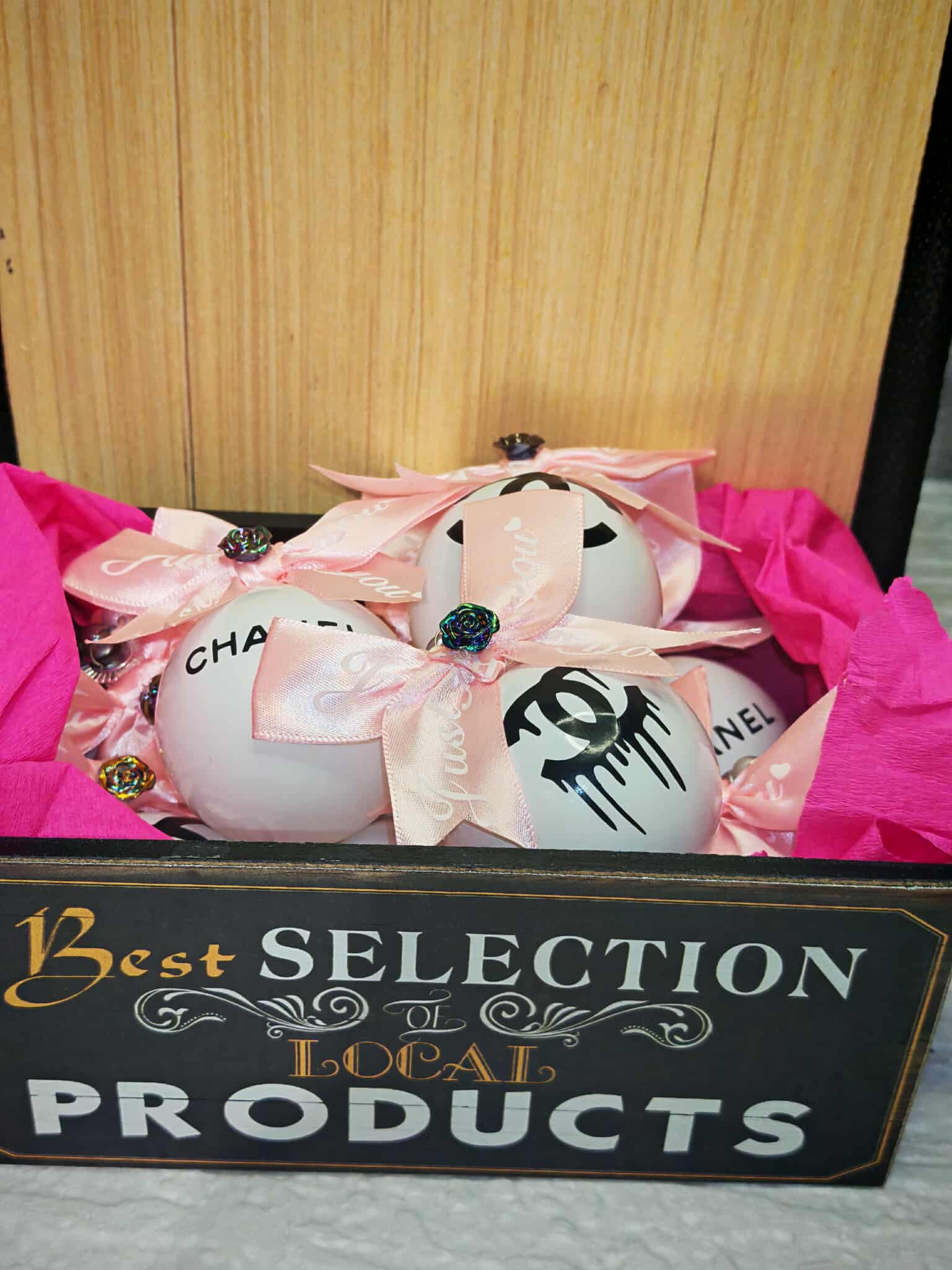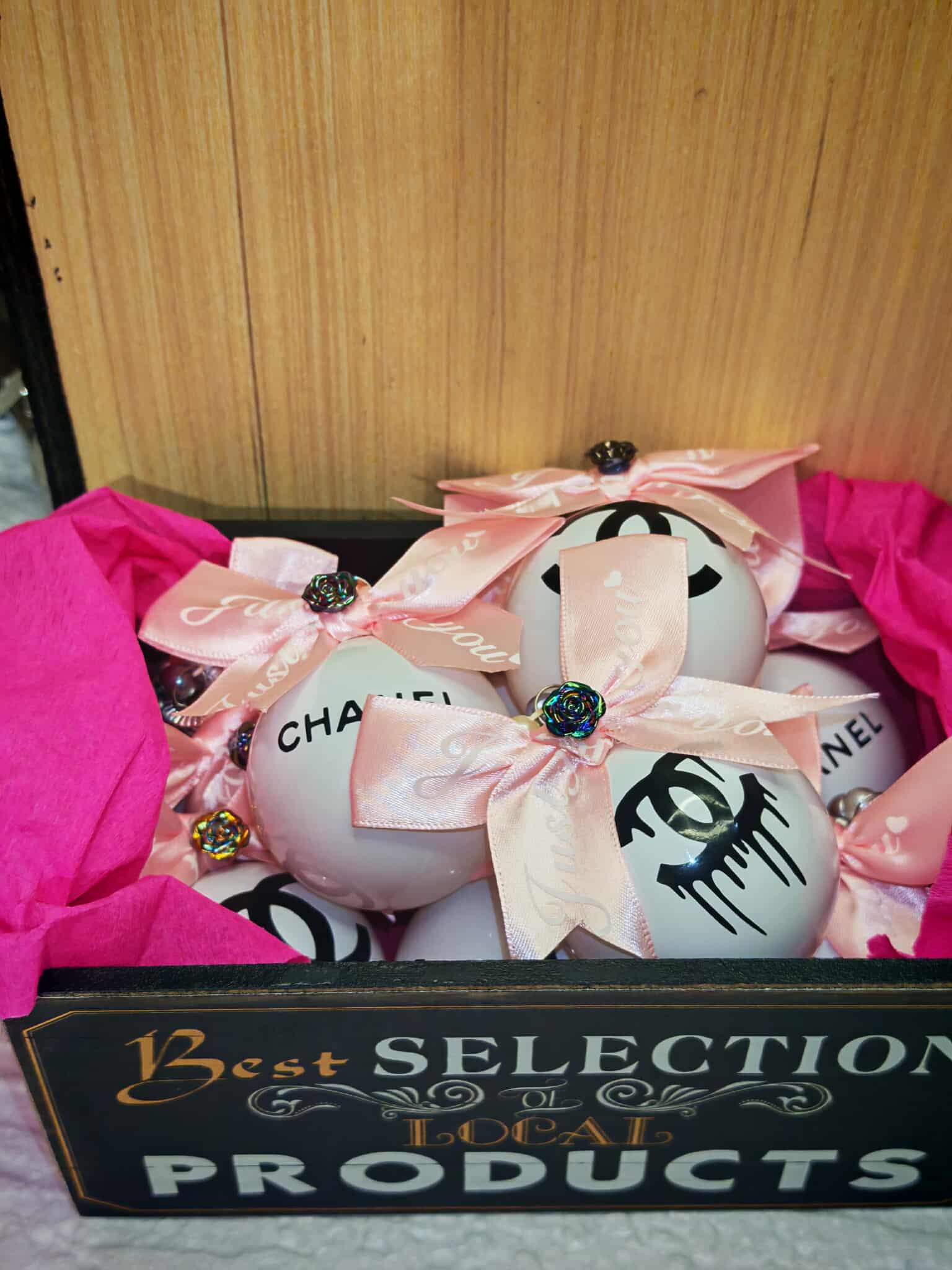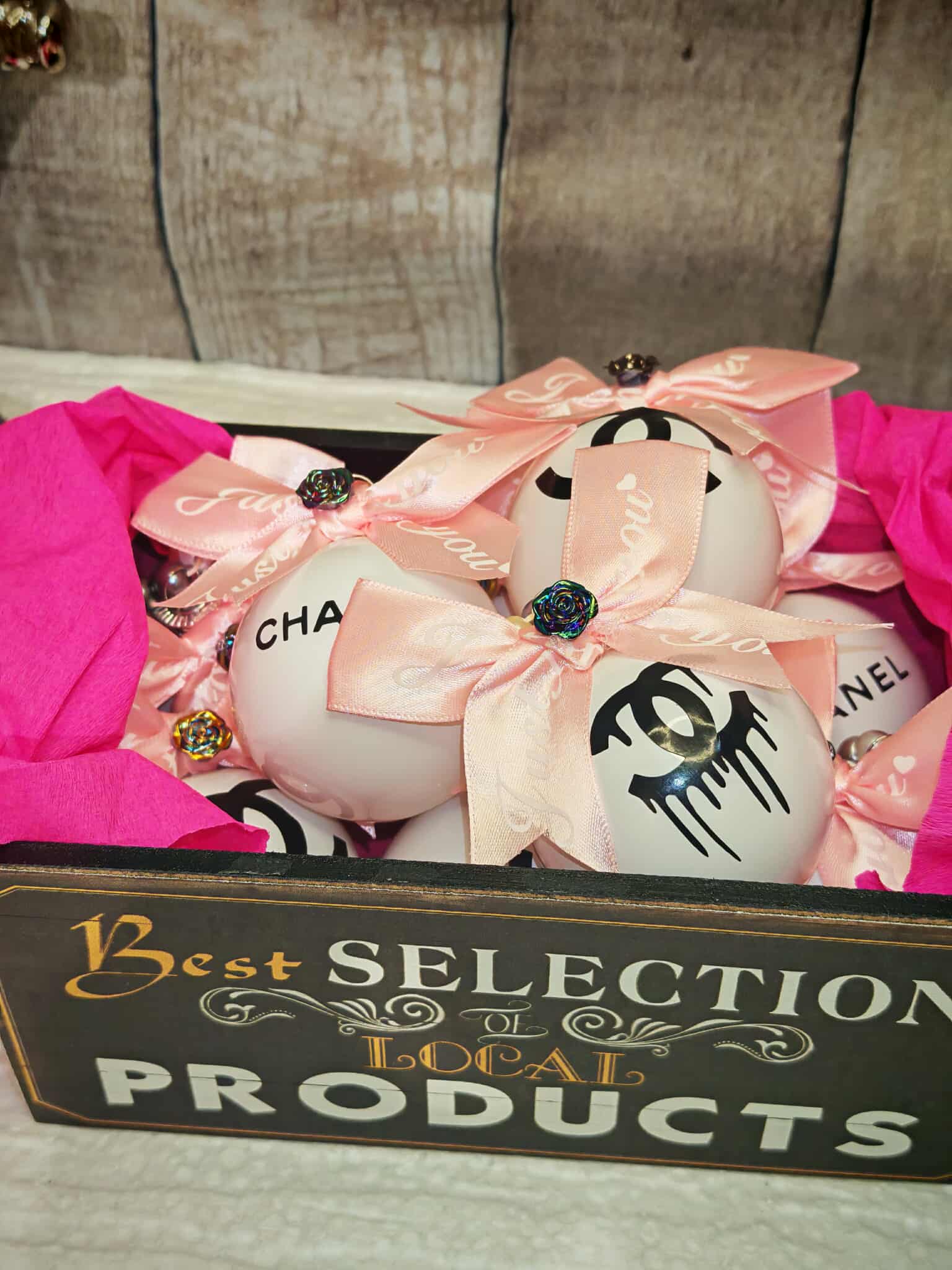 Sublimez votre sapin avec un lot exclusif de neuf boules de Noël customisées, au design raffiné et luxueux, inspiré de l’esthétique des grandes maisons de prestige. Chaque boule est soigneusement décorée, offrant un rendu chic, moderne et éclatant pour une ambiance festive absolument élégante.
