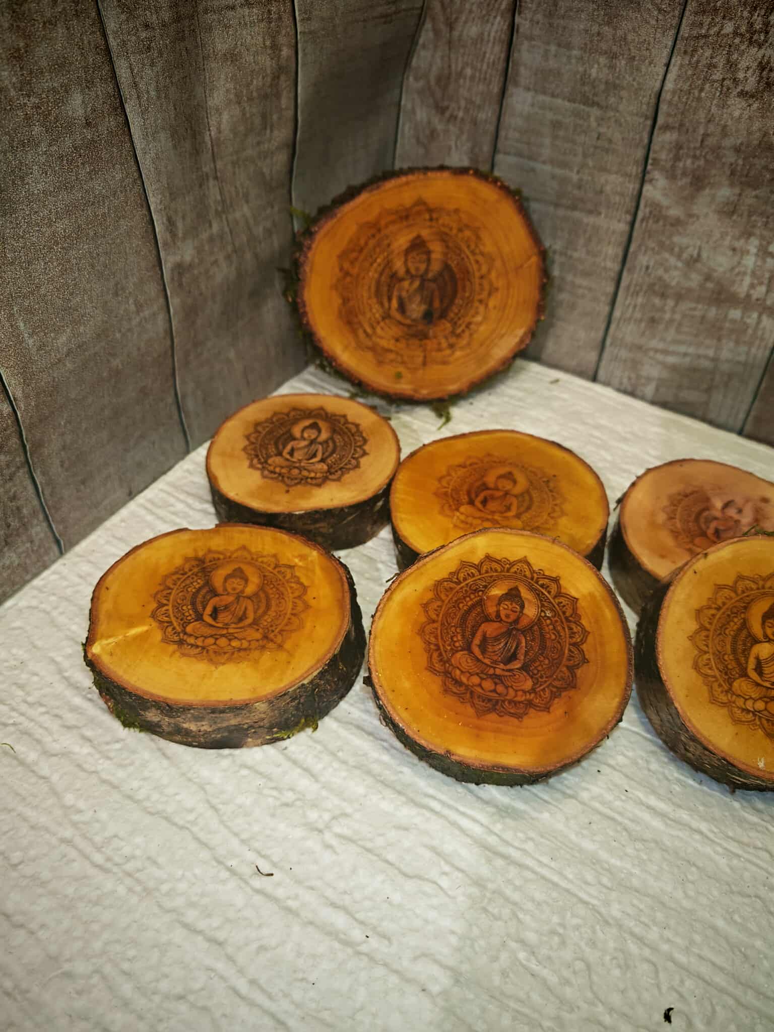 6 jolis sous-verres en rondins de bois, gravés au laser avec soin pour un rendu raffiné et durable.